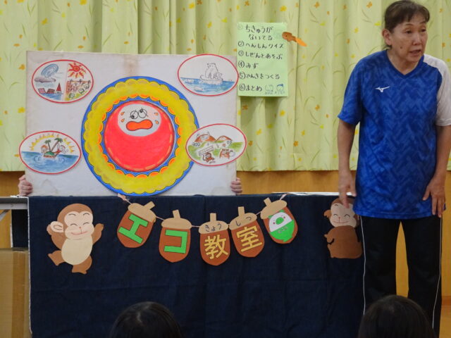 エコ教室がありました。地球にやさしいことをみんなで考えてみようとお話をして下さいました。電気を消す・余った食材を有効に使うなど身近なエコ活動を通してみんなが取り組み、地球温暖化を止められたらいいですね。