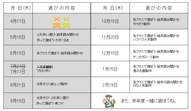 11時頃から、お家の方と一緒に手作り玩具「パクパク人形」を作る予定です。