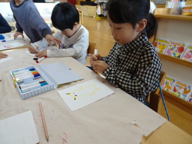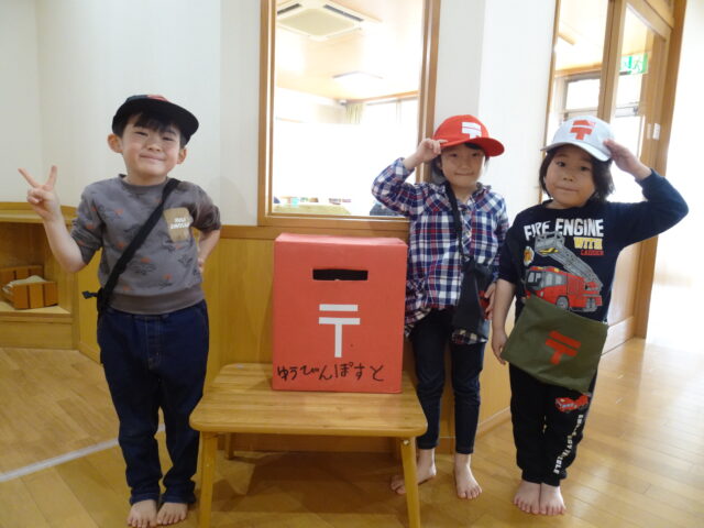 年長児は文字に興味を持ち始め自分たちで宛名も書いていました。