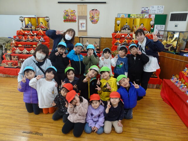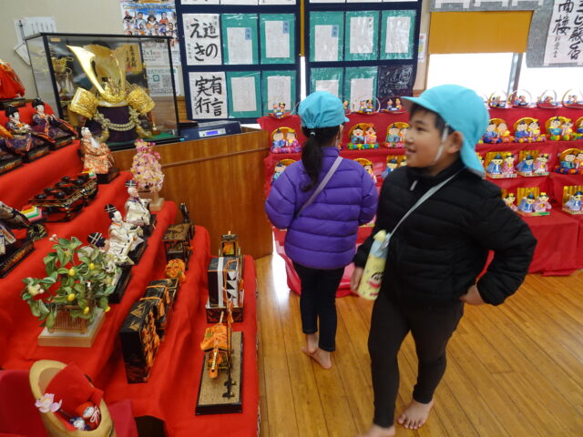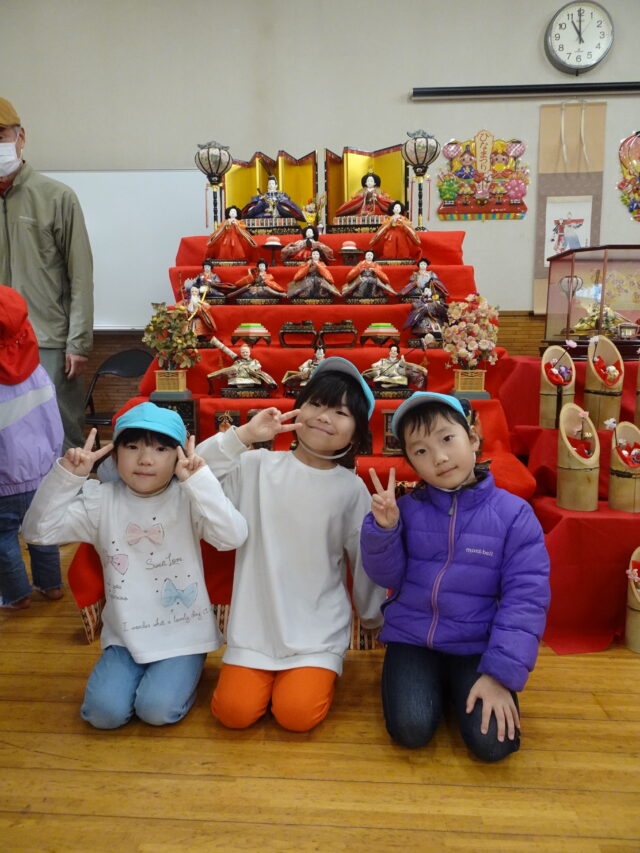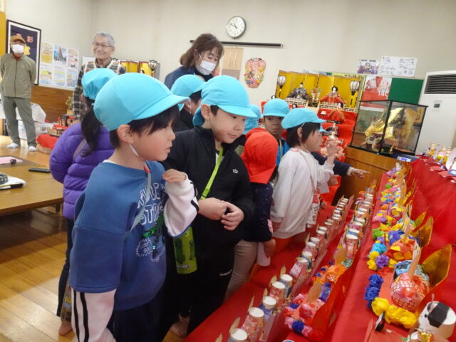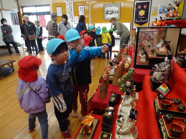 3・4・5歳児が製作したひな人形が町上津役公民館に飾られました。