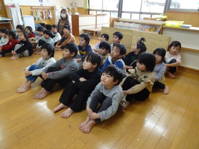 4月から、1年生になる5歳児さんも、年長児になる4歳児さんもしっかりと話を聞くことが出来ました。
