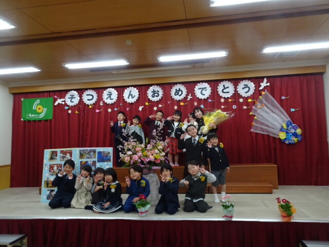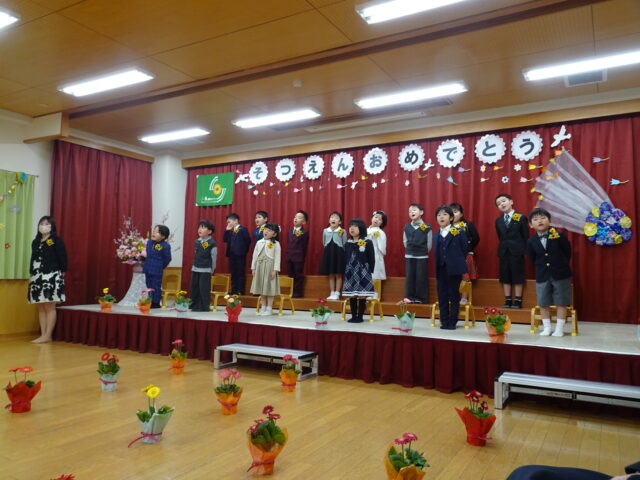 年長児14名が元気に卒園しました。たくさん経験を通して、心も体も大きくなりました。