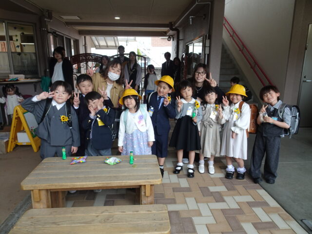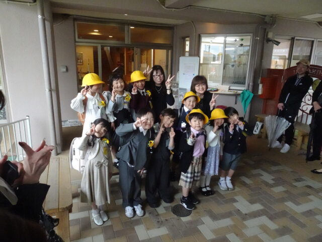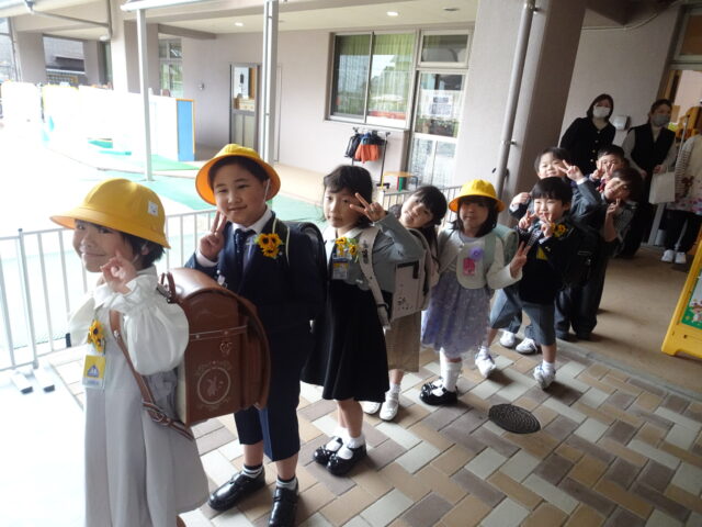 4・5歳児のお友だちからも「おめでとう!!」とお祝いの声を掛けられニッコリ微笑む一年生のお友だちです。