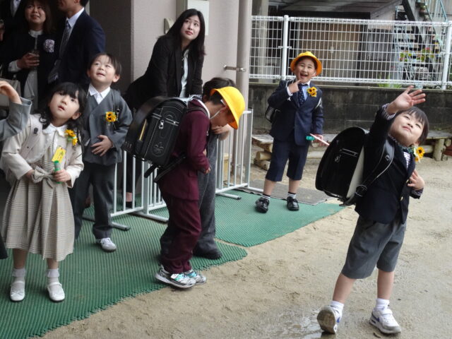 3月に卒園した子どもたちの小学校入学式でした。ピカピカのランドセル姿を見せに来てくれました。
